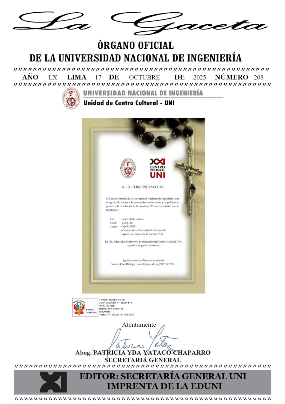 ÓRGANO OFICIAL DE LA UNIVERSIDAD NACIONAL DE INGENIERÍA