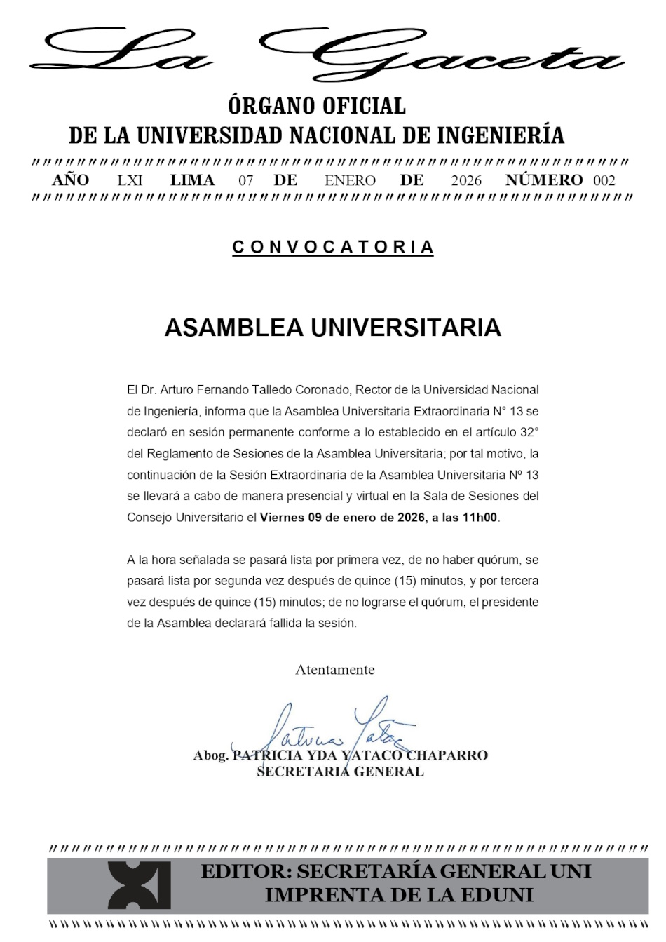ÓRGANO OFICIAL DE LA UNIVERSIDAD NACIONAL DE INGENIERÍA